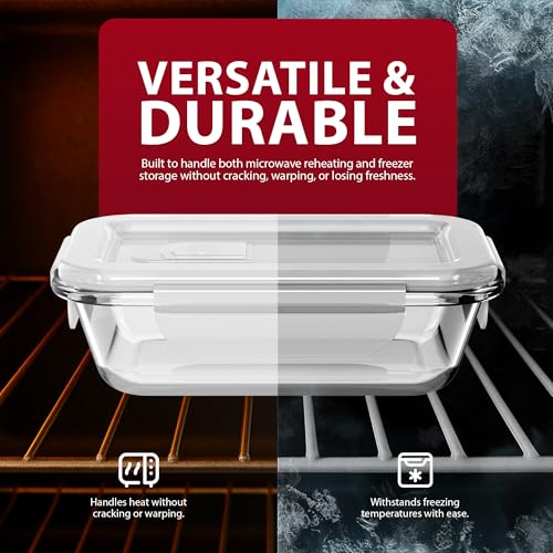 - MICROWAVE, FREEZER & DISHWASHER SAFE MATERIALS – Made from durable borosilicate glass, these glass meal prep containers are safe to use in the microwave, oven (without lid), freezer, and dishwasher for ultimate convenience and versatility.