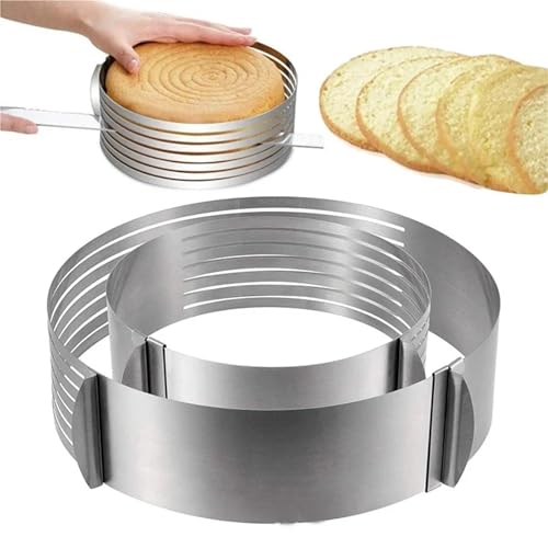 ZFIHAV Cake Ring 6 Layers Adjustable Stainless Steel Round Cake Slicer 6-12 Inch Bread Cutter Mousse Ring Mold Cakes Tools DIY Baking Accessories(S)