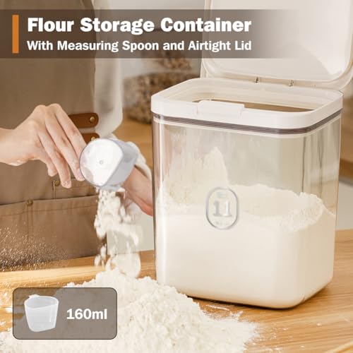 • 【Dispenser with Flip- Top Design】Easy to open and close, easy to clean. Press the button in the centre of the lid to open the lid directly. No need to remove the lid to access the food at any time. We also give you a graduated measuring cup to make it easier for you to pick up rice or flour.