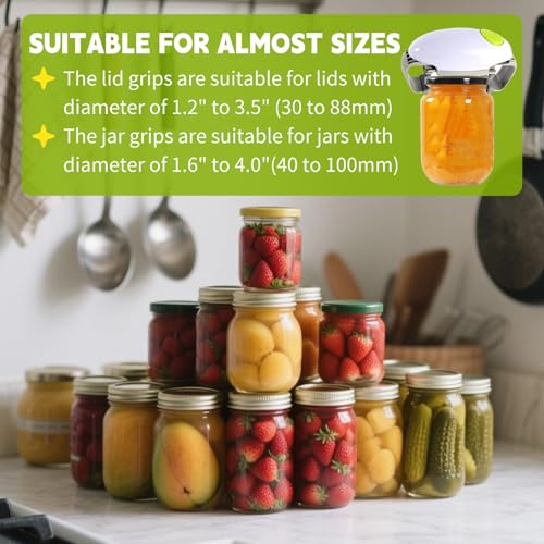 The electric can opener fits most sizes of jars, easily opens lids from 1.2 inches to 3.5 inches in diameter, such as mayonnaise jars, salad dressing jars, spaghetti sauce jars and more.