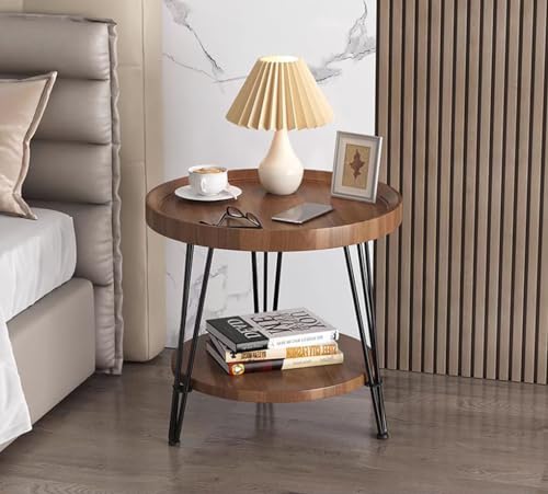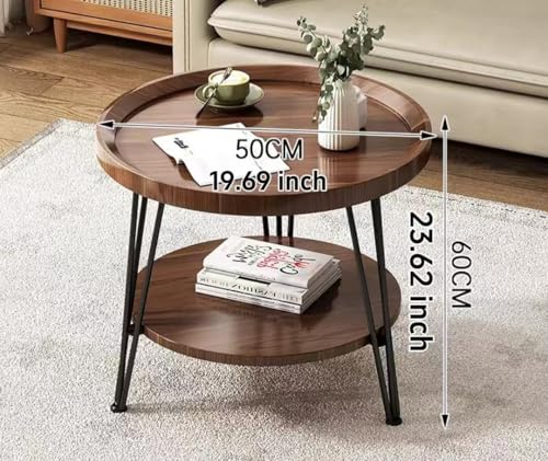 ZOYIZEN Round Table Wooden, 2 Tiers End Tables, Coffee Table Round, Side Tables Living Room Office, Diameter of 50 cm, Height of 60 cm