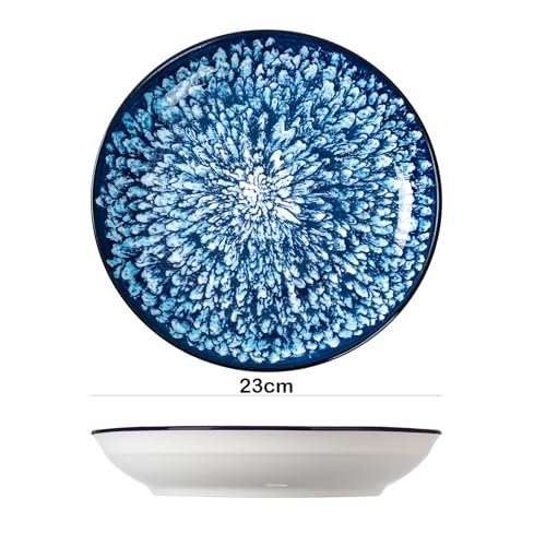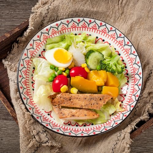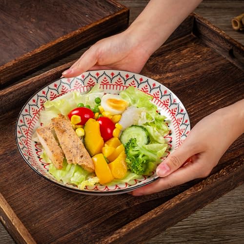 ZPPLD 9inch Plates,Ceramic Dinner Plates, Dinner Plates Set for 6 People,Plate Set, Tableware for Dishwasher and Microwave, Pasta,Breakfast Plate, Classic Bohemian Style