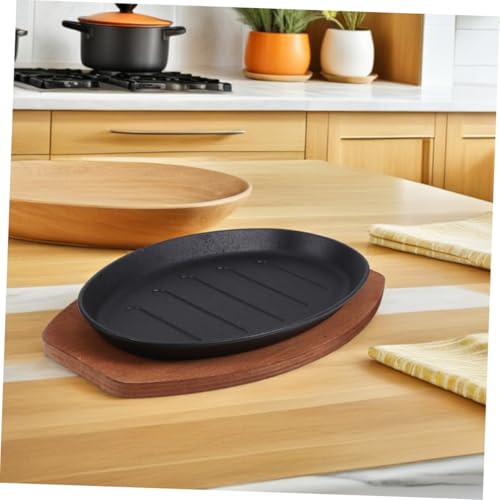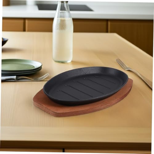 ZUNOXAZ Cast Iron Fajita Pan with Wooden Tray and Heat-Resistant Mitt Versatile Grill and Bakeware for Stovetop and Oven Cooking Even Heat Distribution Steak Platter for Home Barbecue