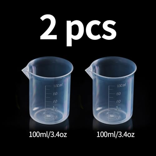 - ★Size–Each pack comes with 2 transparent measuring jugs, each with a capacity of 100ML. Measuring at approximately55*68MM, our measuring jugs are the perfect size for your measuring needs.